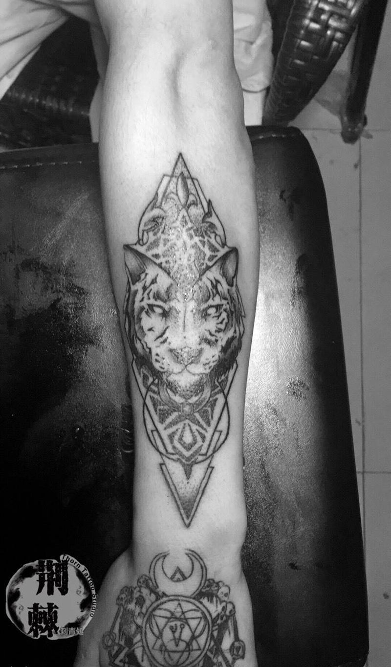 当前位置: 首页 >青海省西宁市纹身店-荆棘刺青処纹身图案>小臂点刺老虎纹身图片