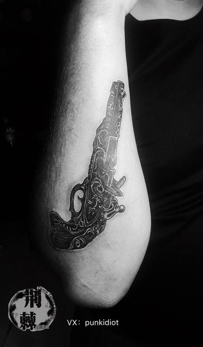 当前位置: 首页 >青海省西宁市纹身店-荆棘刺青処纹身图案>复古火枪纹身图片
