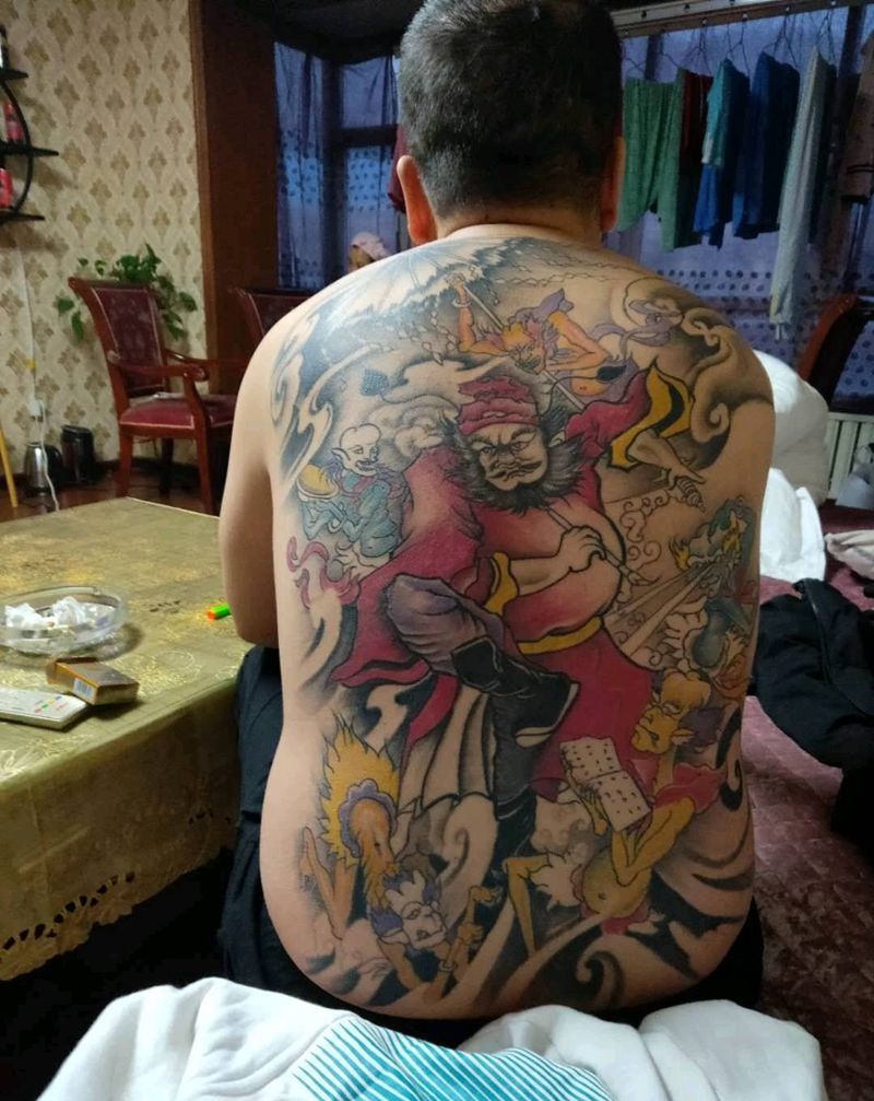 • H霸气全彩满背钟馗纹身图案