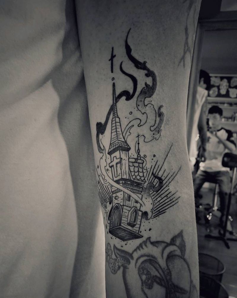 • H精美的十字架纹身图案 十字架刺青图片