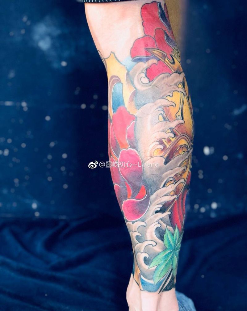 • T网红王老大花腿龙纹身图片_腿部新传统纹身图案