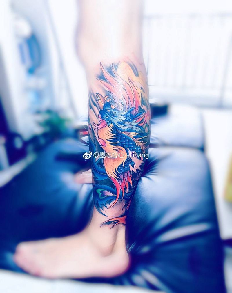 当前位置: 首页 >青海省西宁市纹身店-墨臣刺青纹身图案>凤凰纹身图片_腿部新传统重彩凤凰纹身图案