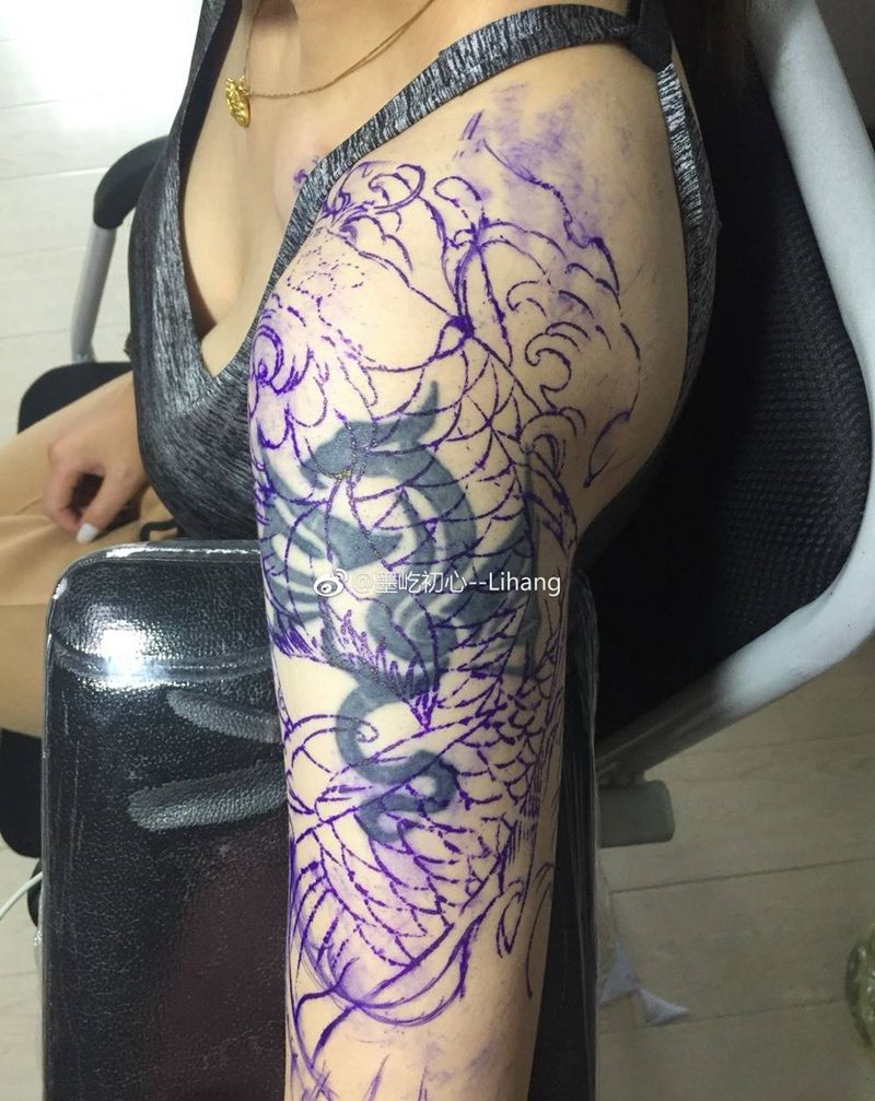 • T网红王老大花腿龙纹身图片_腿部新传统纹身图案
