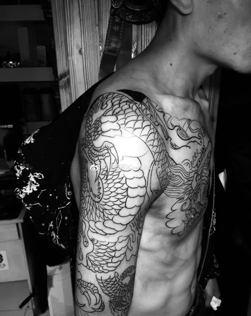 半甲龙纹身图片_肩部胸部新传统老传统龙半甲纹身图案