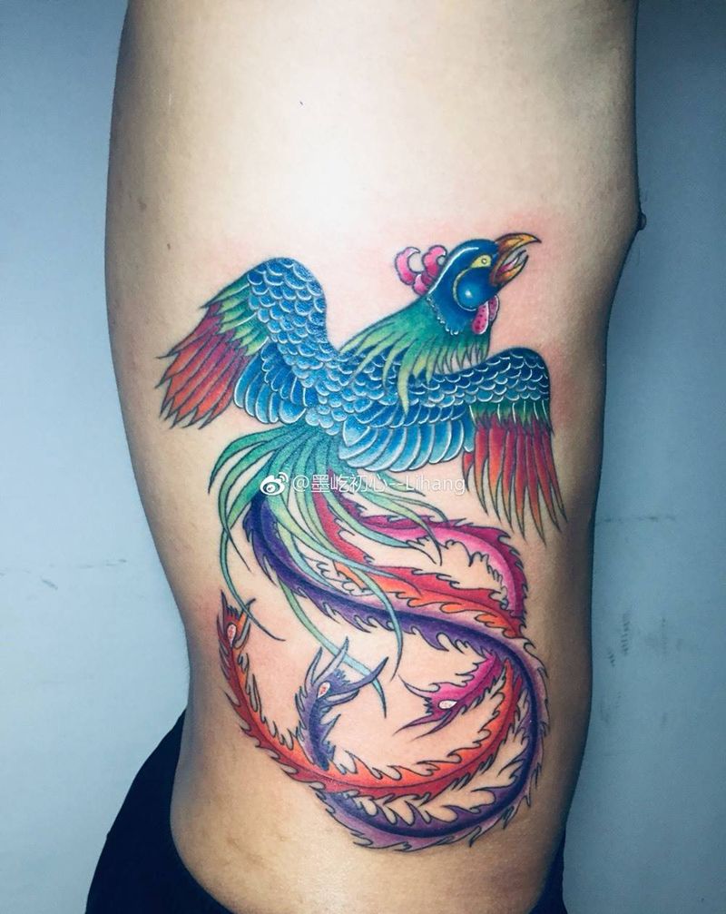 凤凰纹身图片_腰部新传统凤凰纹身图案