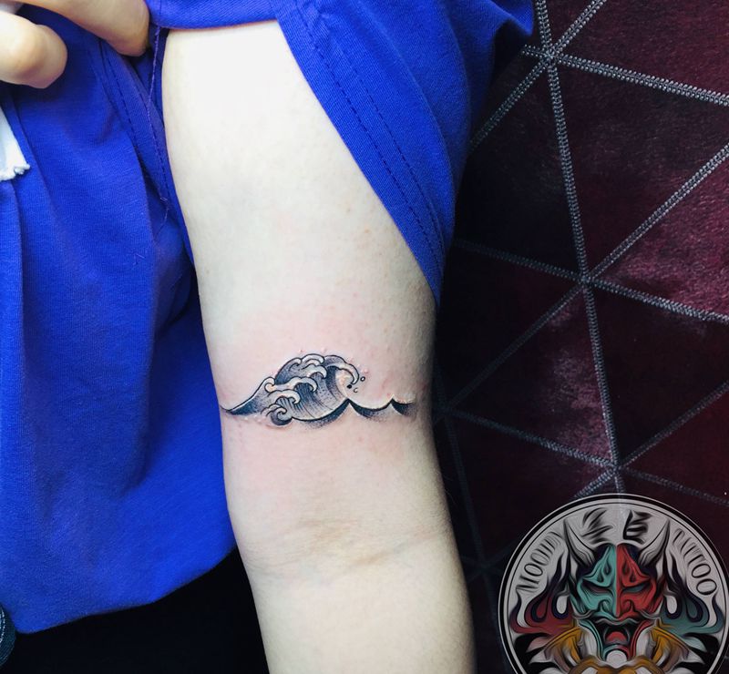 当前位置: 首页 >青海省西宁市纹身店-墨臣刺青纹身图案>山水纹身图片_手臂几何点刺点刺山水浪纹身图案