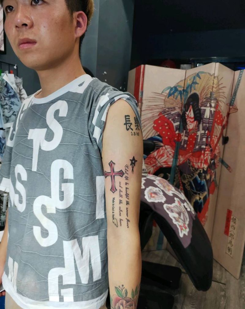 当前位置: 首页 >宁夏银川市纹身店-海纹画纹身图案>十字架,英文,小星星纹身图片_手臂纹身图案
