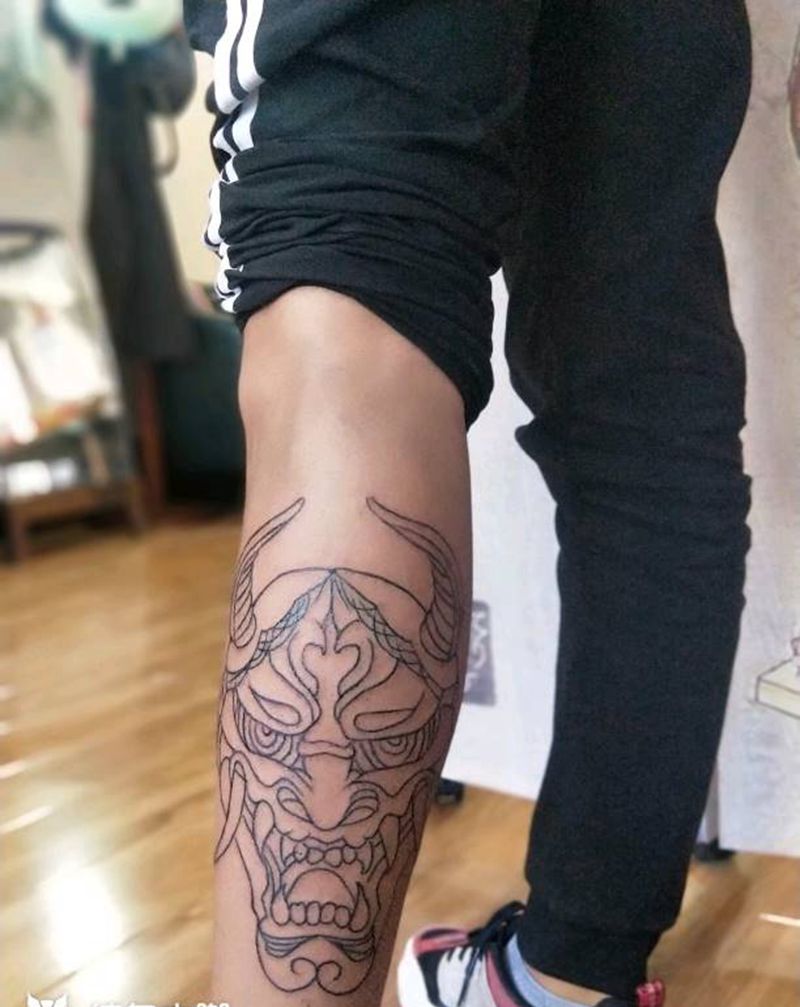 • T网红王老大花腿龙纹身图片_腿部新传统纹身图案