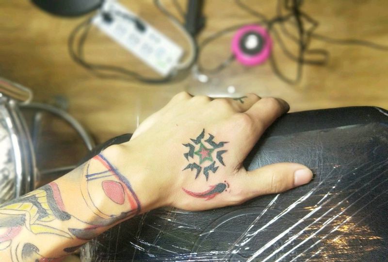 当前位置: 首页 >宁夏银川市纹身店-海纹画纹身图案>手手手,附一张工作照纹身图片