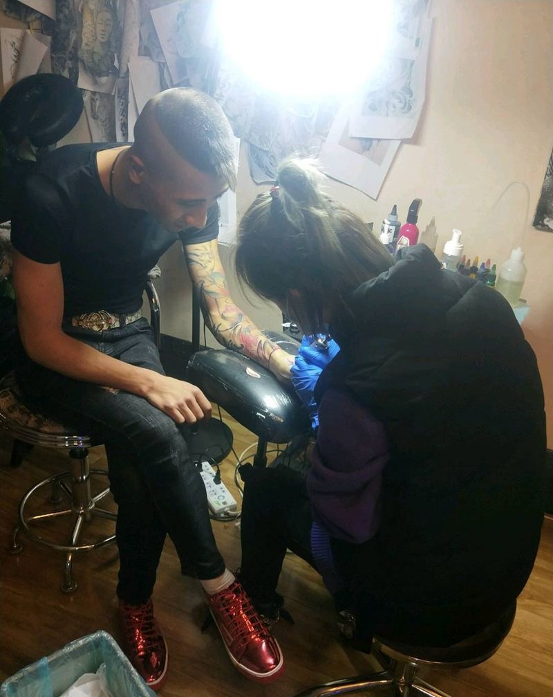当前位置: 首页 >宁夏银川市纹身店-海纹画纹身图案>手手手,附一张工作照纹身图片