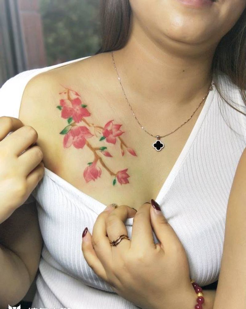 • 女性大花胸纹身_43张霸气漂亮的女性大花胸纹身图案作品