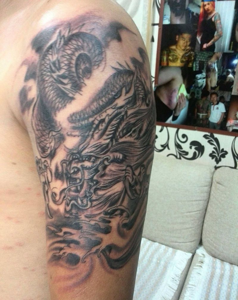 • T云龙九郎纹身图片_背部老传统云龙九郎纹身图案