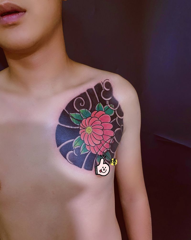 • 女性大花胸纹身_43张霸气漂亮的女性大花胸纹身图案作品