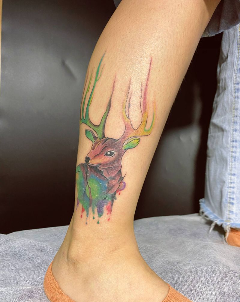 当前位置: 首页 >宁夏银川市纹身店-银川市金凤区佛陀刺青店纹身图案>梅花鹿纹身图片_腿部水彩纹身图案