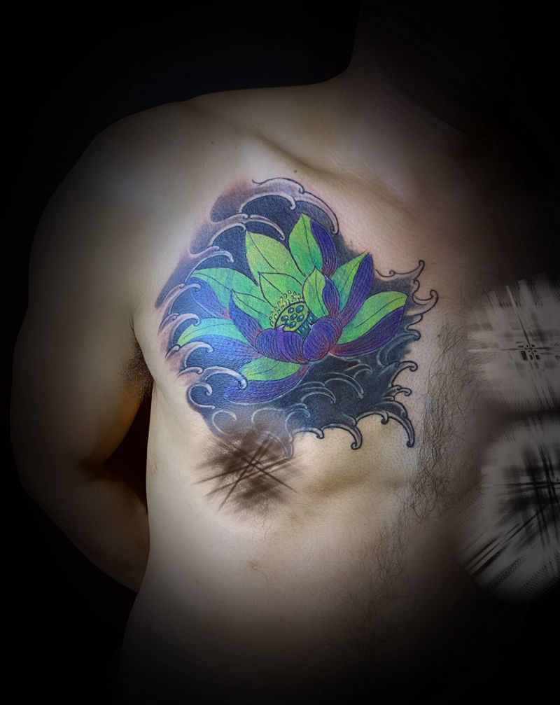 一组15张莲花纹身手