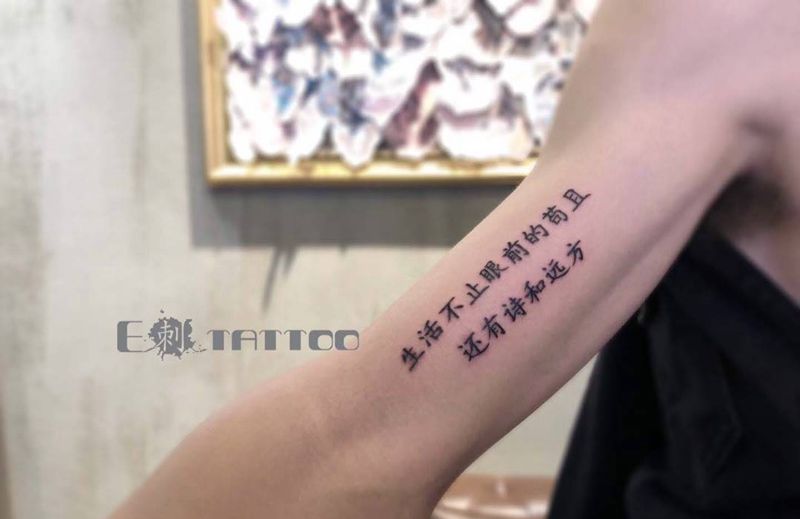 生活不止眼前的苟且、还有诗和远方纹身图片_手臂新传统花体字纹身图案