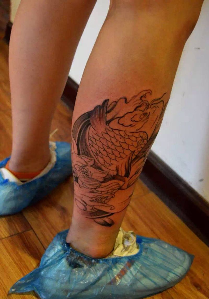 • T网红王老大花腿龙纹身图片_腿部新传统纹身图案