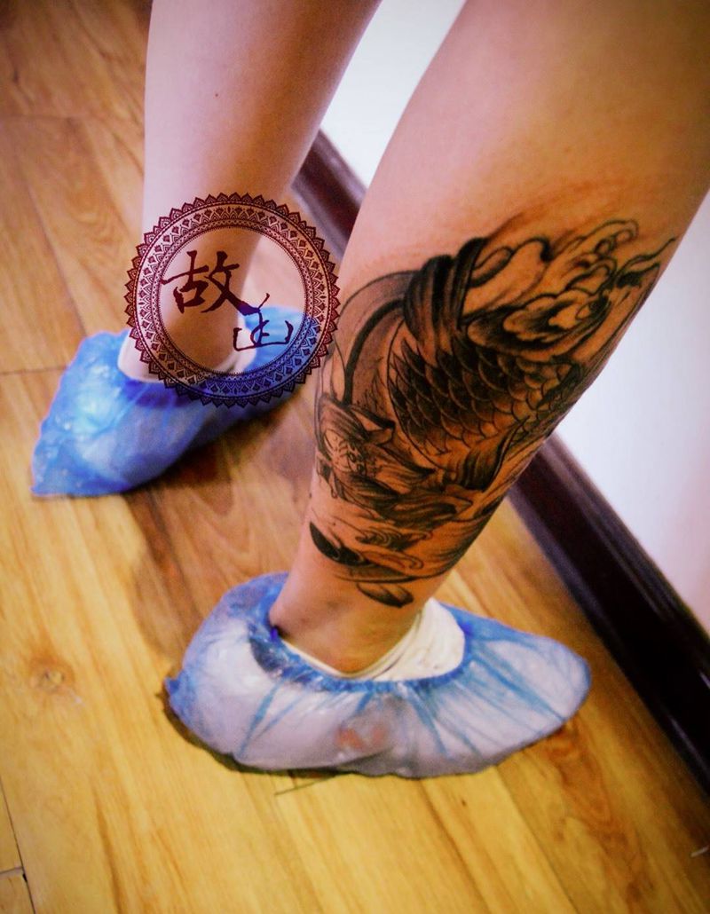 当前位置: 首页 >宁夏银川市纹身店-故幽刺青工作室(vian)纹身图案>小腿鲤鱼完成纹身图片_成品腿部传统动物纹身图案