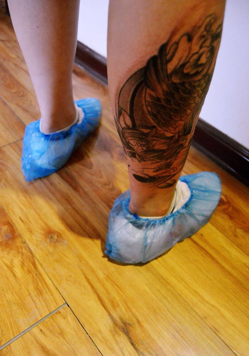 当前位置: 首页 >宁夏银川市纹身店-故幽刺青工作室(vian)纹身图案>小腿鲤鱼完成纹身图片_成品腿部传统动物纹身图案