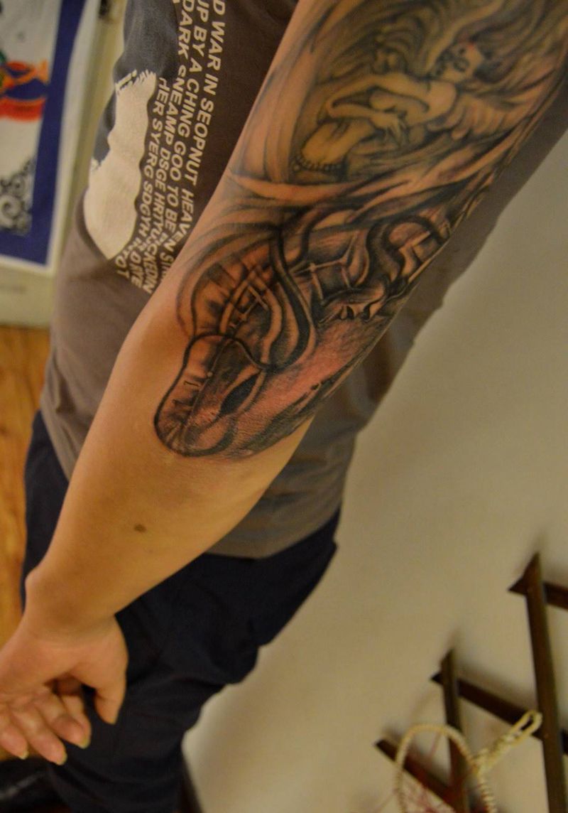当前位置: 首页 >宁夏银川市纹身店-故幽刺青工作室(vian)纹身图案>拼接未完成纹身图片_成品手臂欧美纹身图案