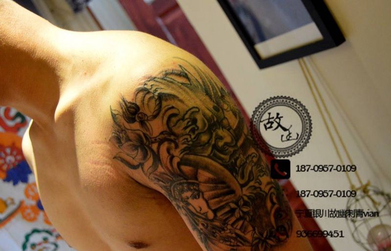 当前位置: 首页 >宁夏银川市纹身店-故幽刺青工作室(vian)纹身图案>未完成纹身图片_成品手臂传统鬼神植物原创纹身图案