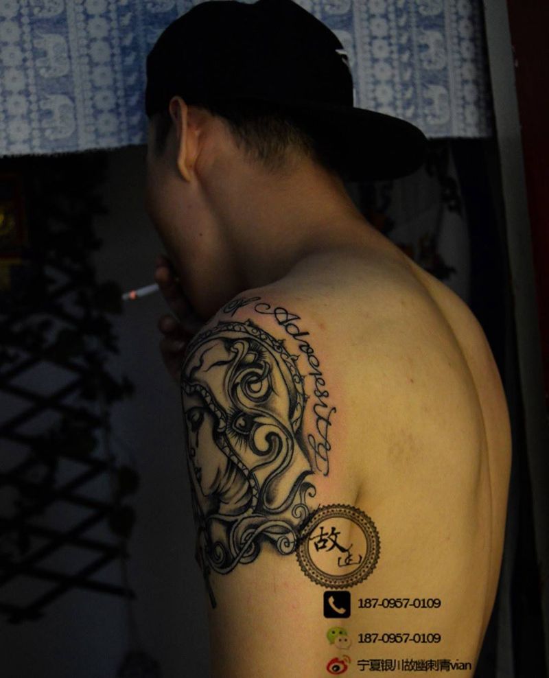 • 纹身吧推荐的披肩图腾半胛纹身图案作品展示