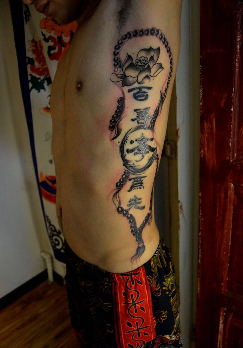 未完成纹身图片_手稿腹部传统字符植物原创纹身图案