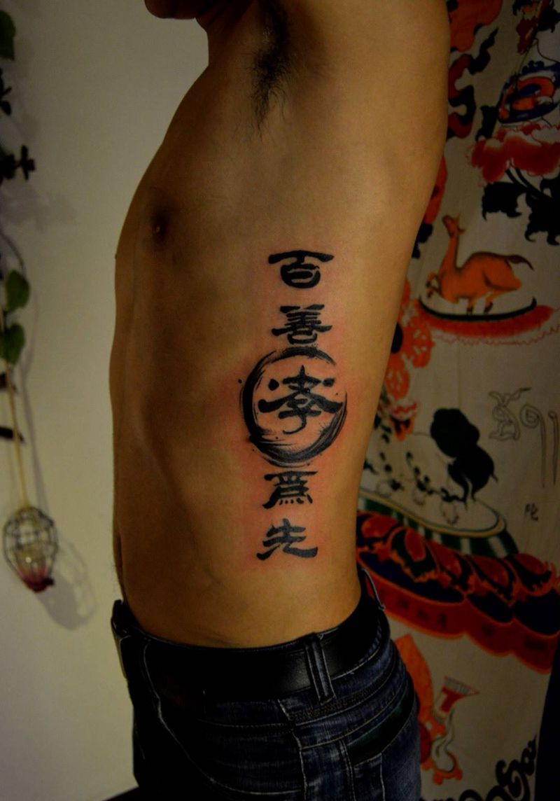 百善孝为先纹身图片_手稿成品腰部传统字符纹身图案