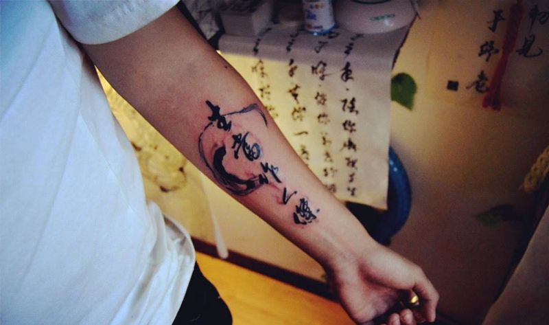 当前位置: 首页 >宁夏银川市纹身店-故幽刺青工作室(vian)纹身图案>汉字纹身图片_成品手稿手臂传统字符纹身图案