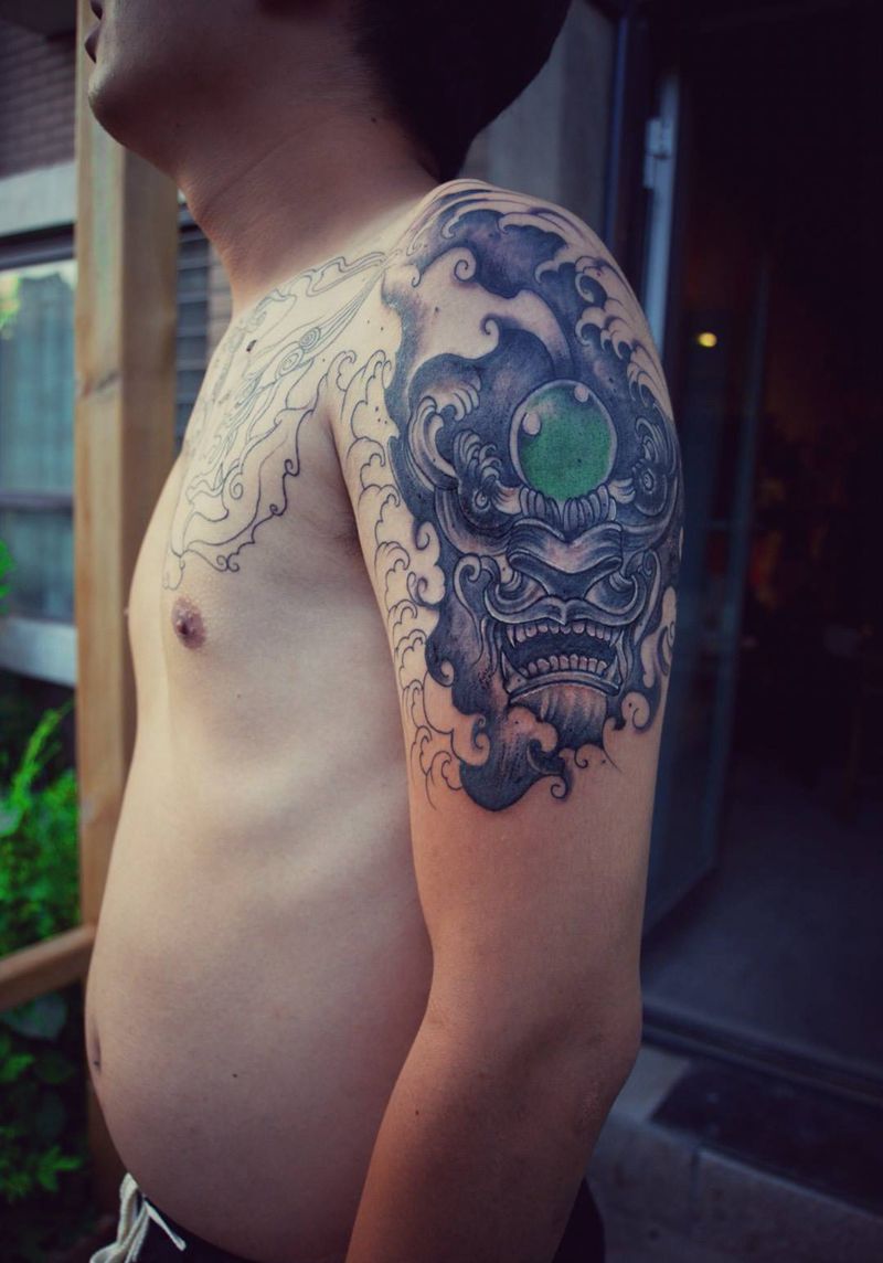 • 纹身吧推荐的披肩图腾半胛纹身图案作品展示