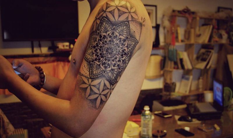 • 纹身吧推荐的披肩图腾半胛纹身图案作品展示