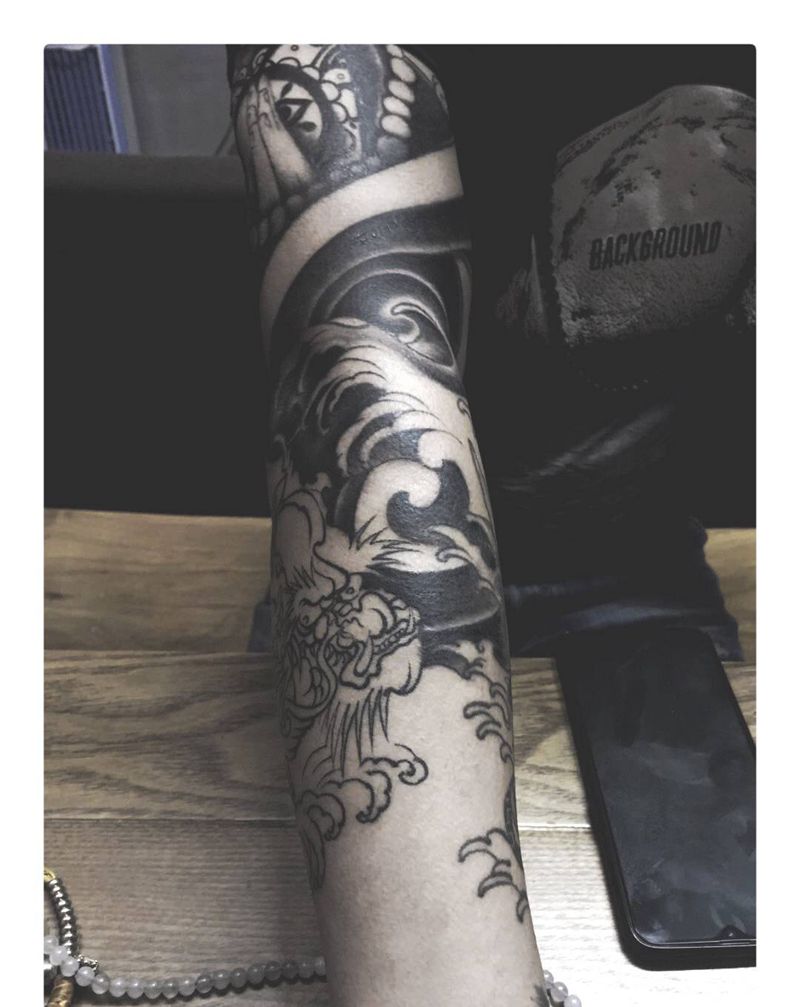 • T网红王老大花腿龙纹身图片_腿部新传统纹身图案
