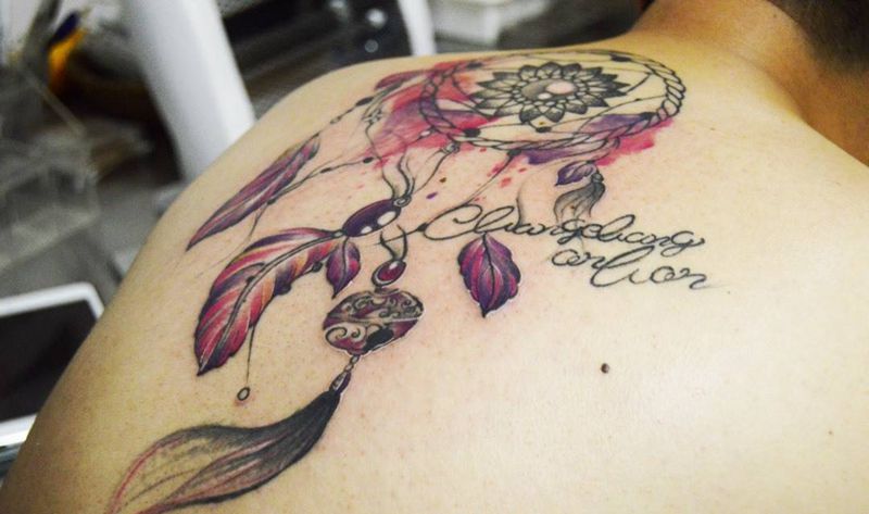 当前位置: 首页 >宁夏银川市纹身店-故幽刺青工作室(vian)纹身图案>捕梦网完成纹身图片_背部水彩原创纹身图案