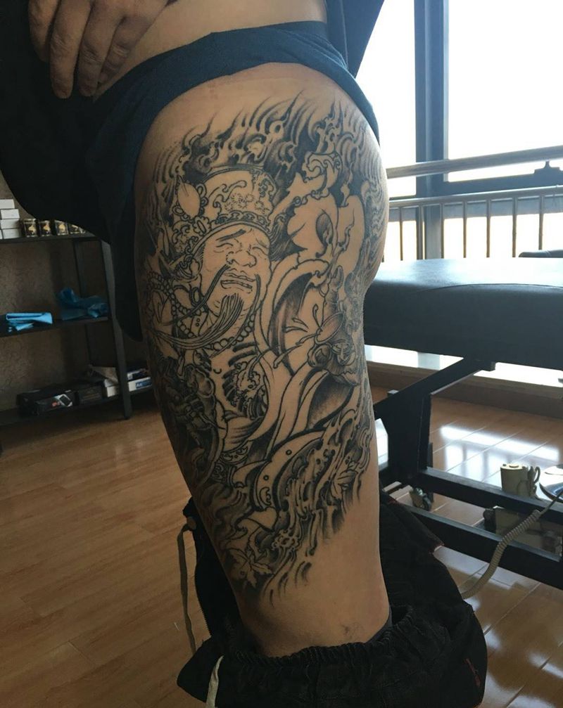 • T网红王老大花腿龙纹身图片_腿部新传统纹身图案