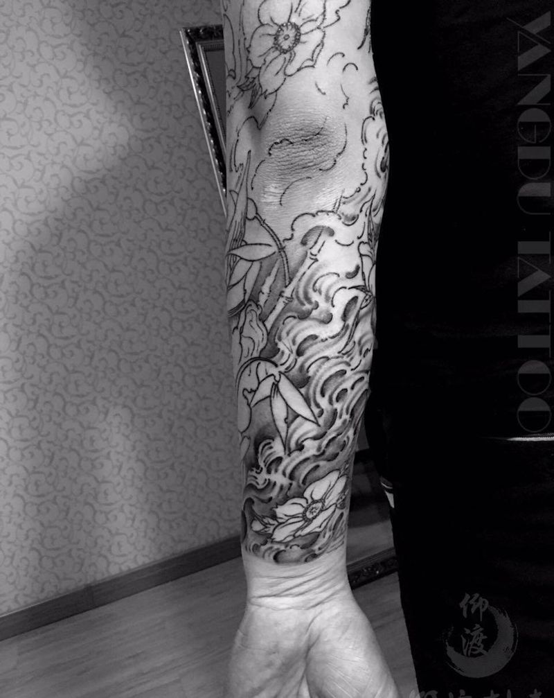 当前位置: 首页 >宁夏银川市纹身店-仰渡刺青纹身图案>花臂 进度纹身图片_原创纹身图案
