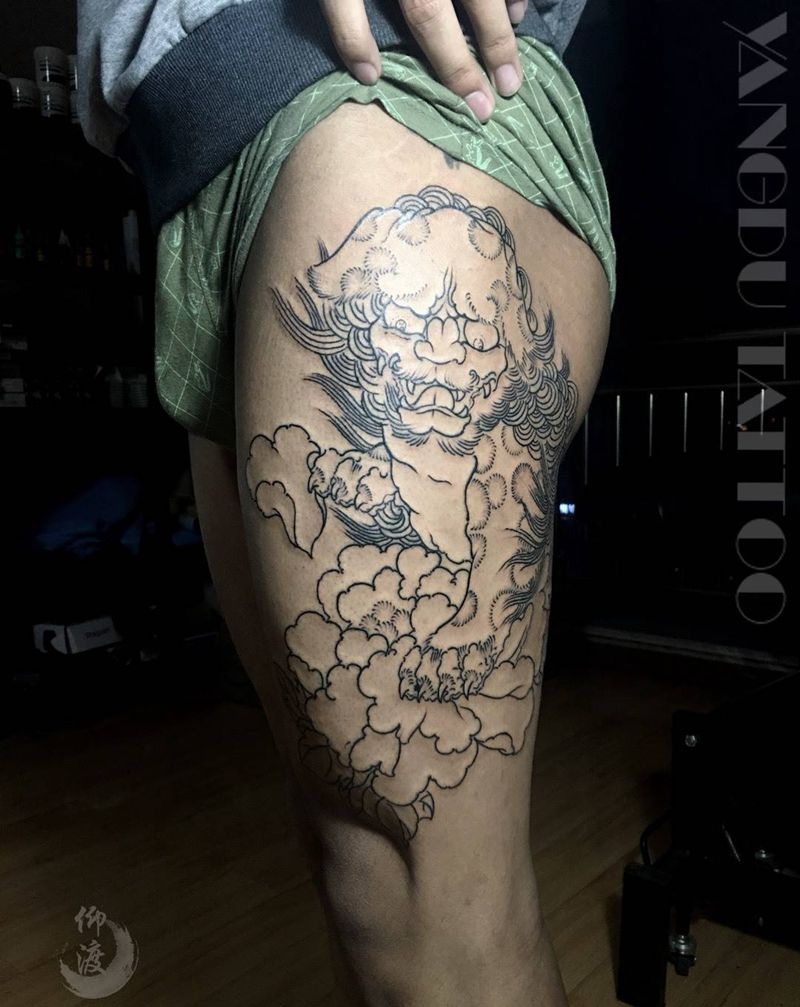 • T网红王老大花腿龙纹身图片_腿部新传统纹身图案