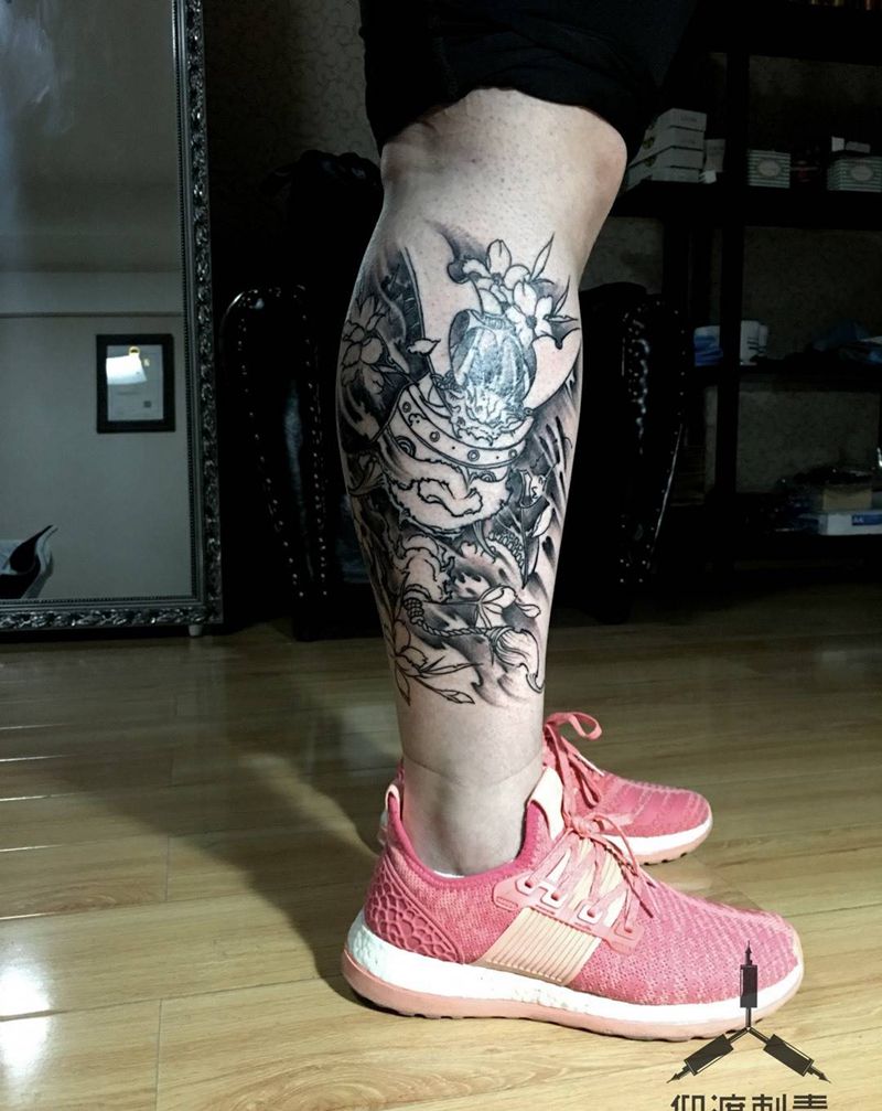• T网红王老大花腿龙纹身图片_腿部新传统纹身图案
