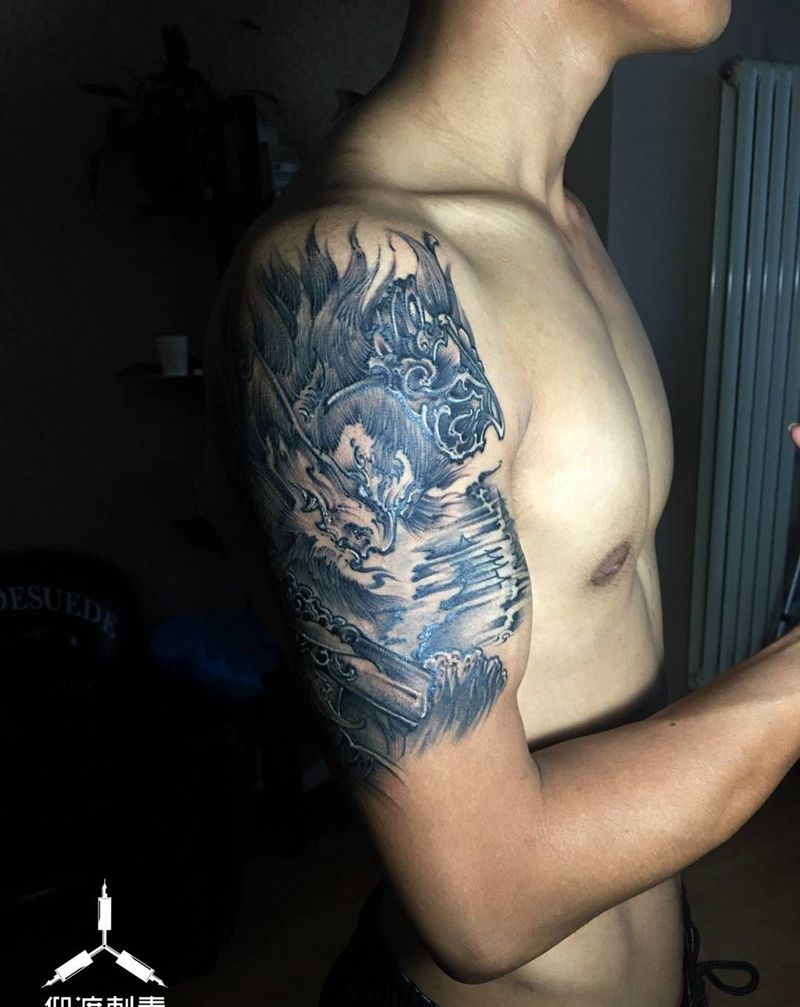 • 纹身吧推荐的披肩图腾半胛纹身图案作品展示