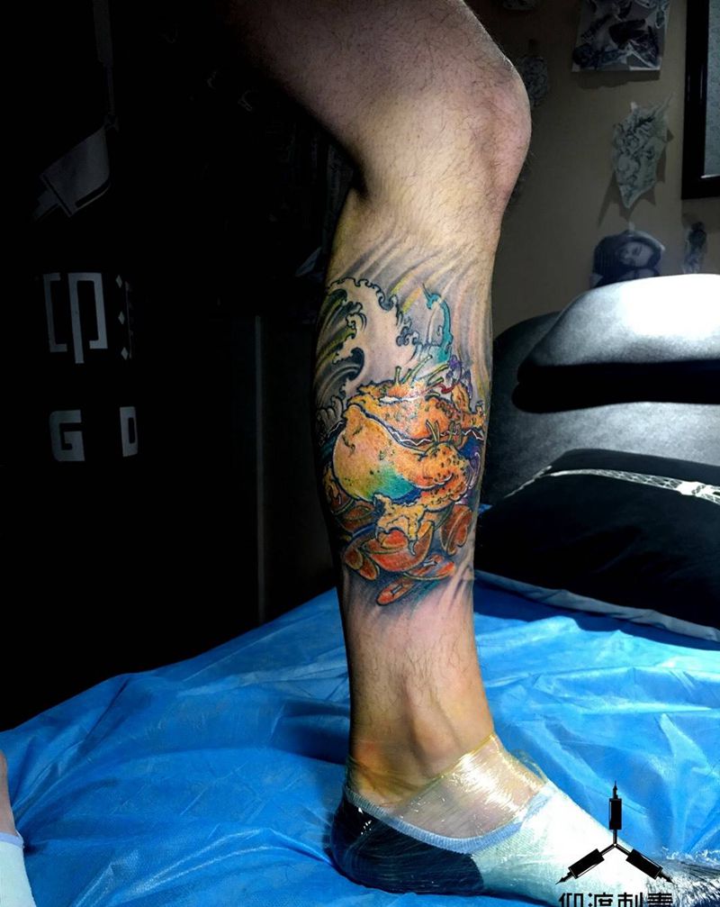 • T网红王老大花腿龙纹身图片_腿部新传统纹身图案