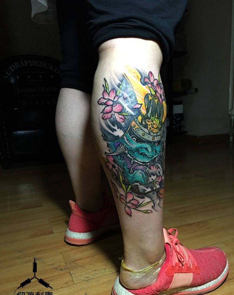 • T网红王老大花腿龙纹身图片_腿部新传统纹身图案