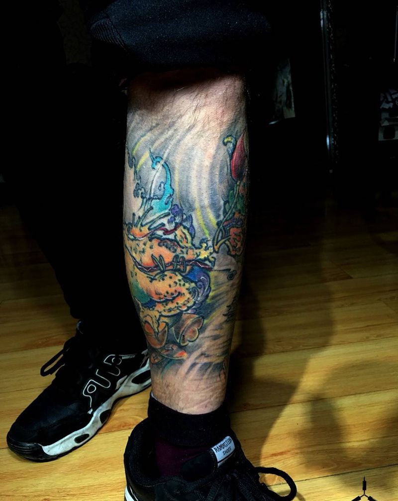 • T网红王老大花腿龙纹身图片_腿部新传统纹身图案