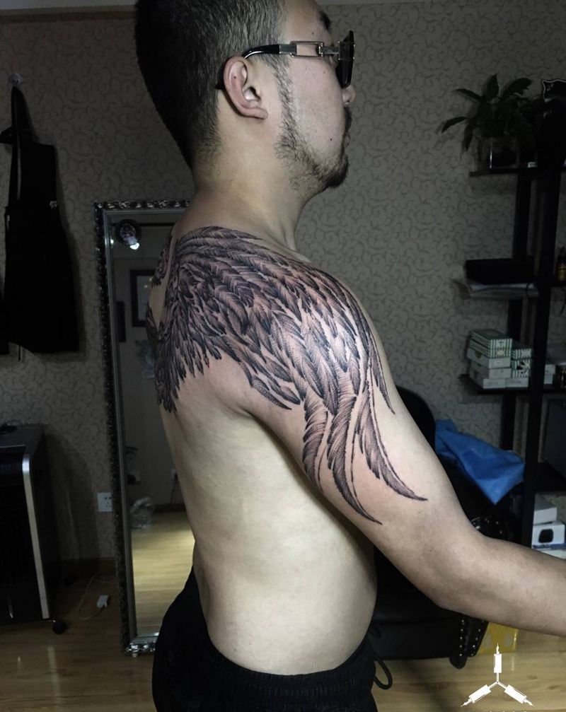 • 纹身吧推荐的披肩图腾半胛纹身图案作品展示