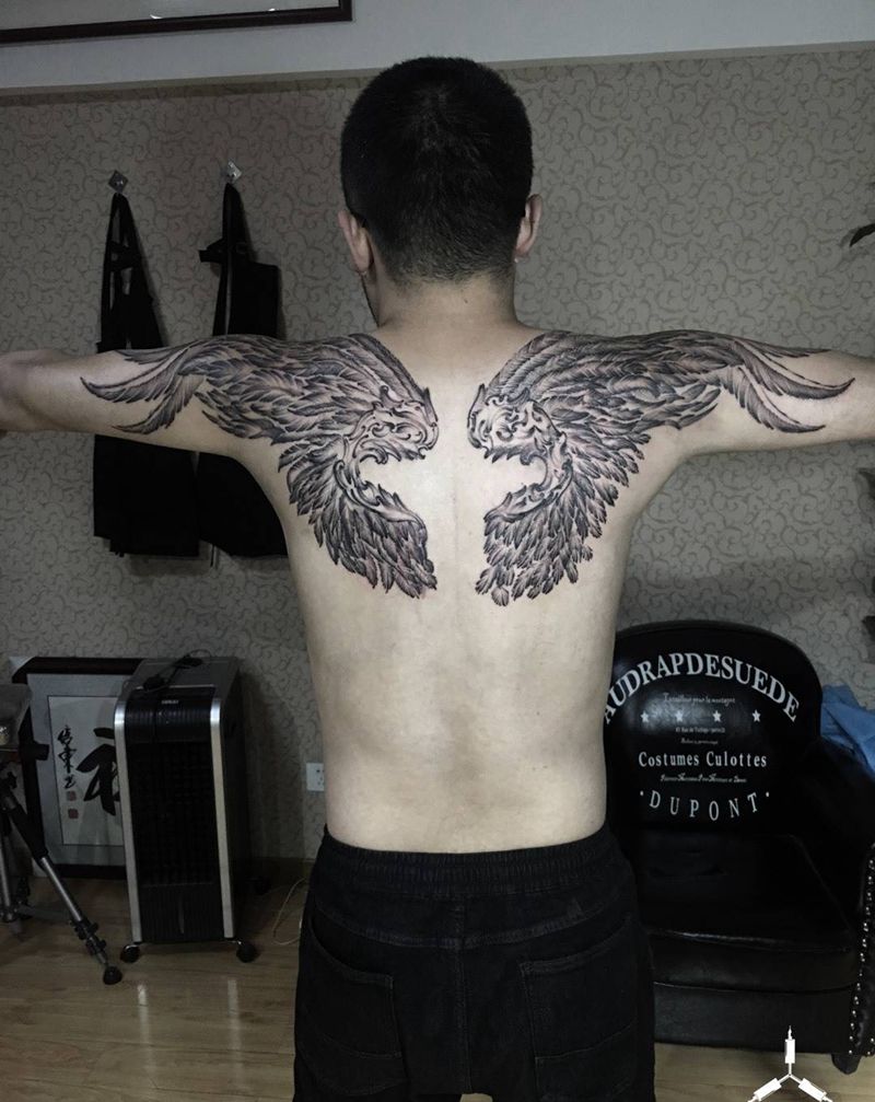 黑灰满背纹身图案