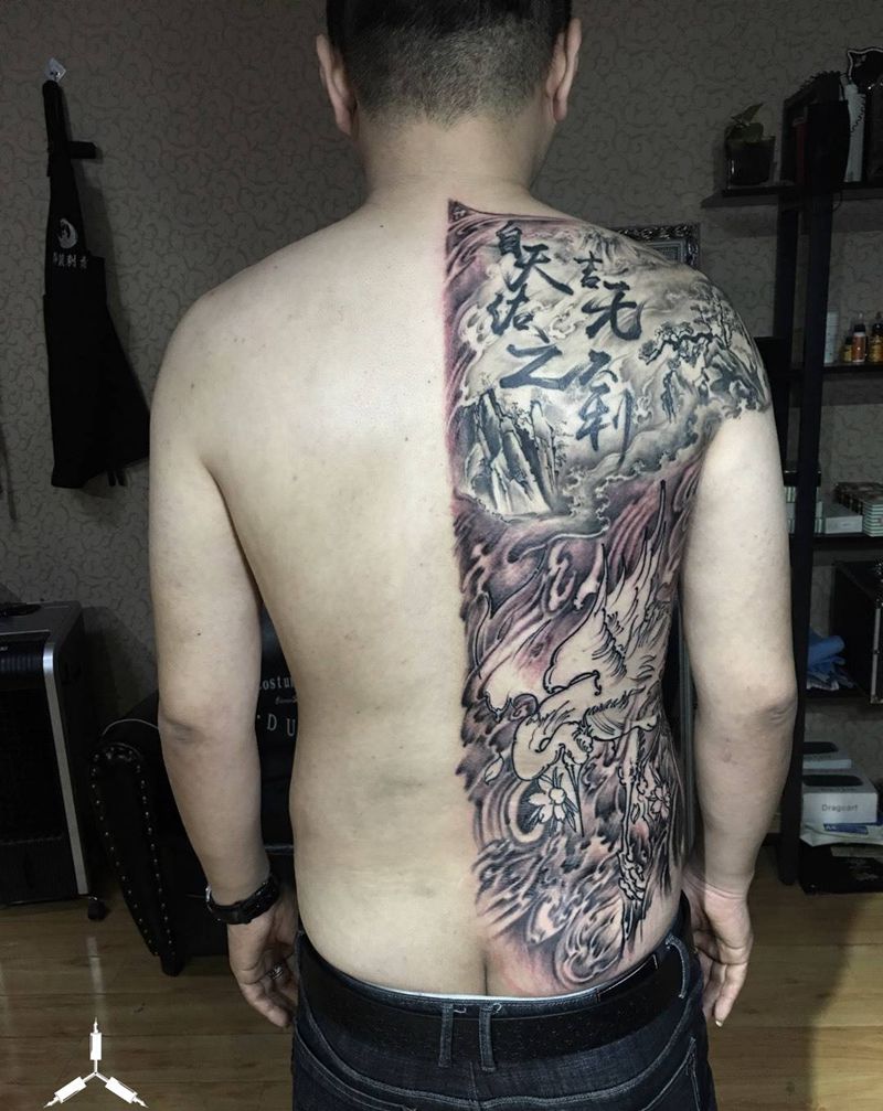 当前位置: 首页 >宁夏银川市纹身店-仰渡刺青纹身图案>半背作品/仰渡纹身图片_原创纹身图案