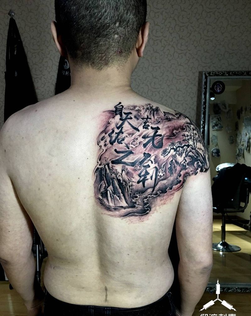 • 纹身吧推荐的披肩图腾半胛纹身图案作品展示