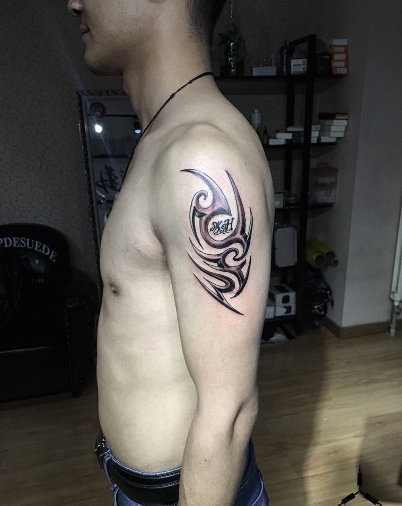 • 纹身吧推荐的披肩图腾半胛纹身图案作品展示