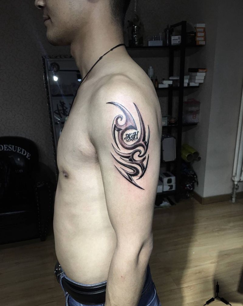 • 纹身吧推荐的披肩图腾半胛纹身图案作品展示
