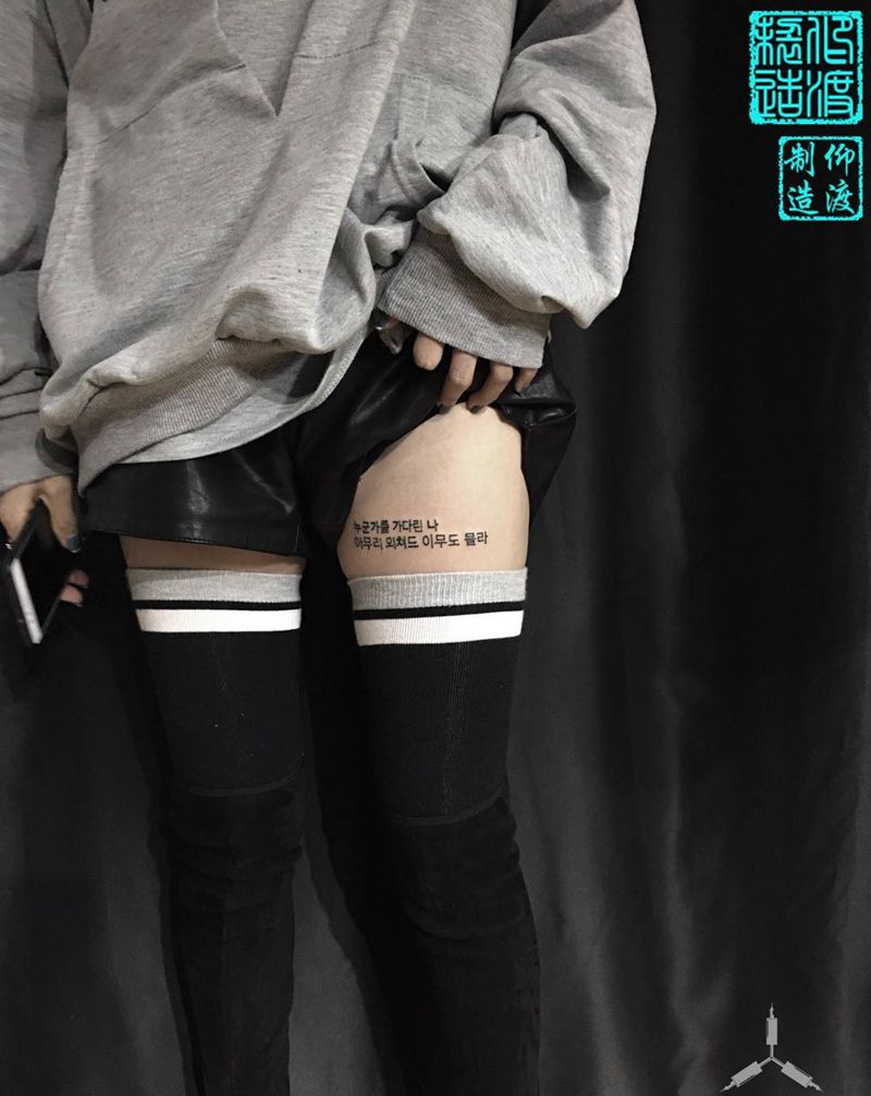 当前位置: 首页 >宁夏银川市纹身店-仰渡刺青纹身图案>韩文纹身图片_腿部花体字纹身图案