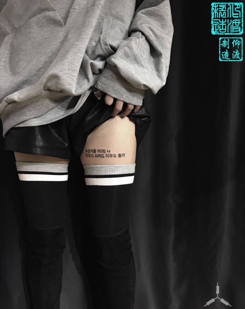 当前位置: 首页 >宁夏银川市纹身店-仰渡刺青纹身图案>韩文纹身图片_腿部花体字纹身图案