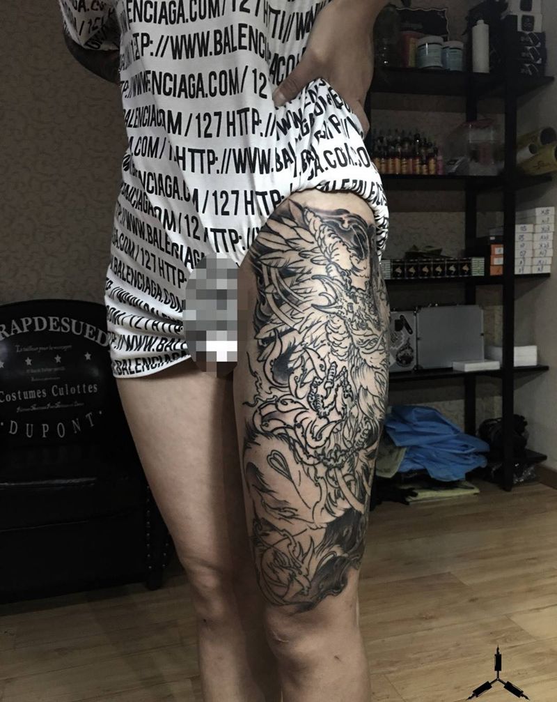 当前位置: 首页 >宁夏银川市纹身店-仰渡刺青纹身图案>大腿/凤凰/未完成…纹身图片_臀部腿部新传统凤凰纹身图案